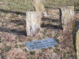 Here are a couple of photos at a geocache we logged in Tennessee. About half of the headstones in the cemetery are just rocks. One grave site (Fox) is the oldest recorded grave in the county. Someone has provided a modern headstone to mark it, and it is inscribed with how Mr. Fox met his faith. Quite a story.